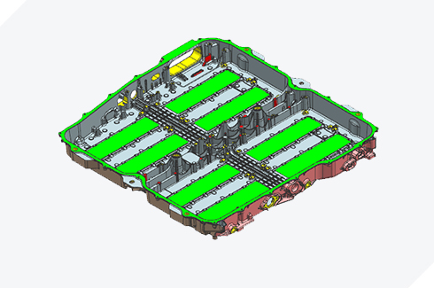 • 整體壓鑄電池托盤:整體性好,一次成型,不需要進一步的焊接工藝,產(chǎn)品形狀較復雜,加工相對來說比較復雜,工序集成度要求高,宜使用臥式(HF-500)或 JVH-500 設備