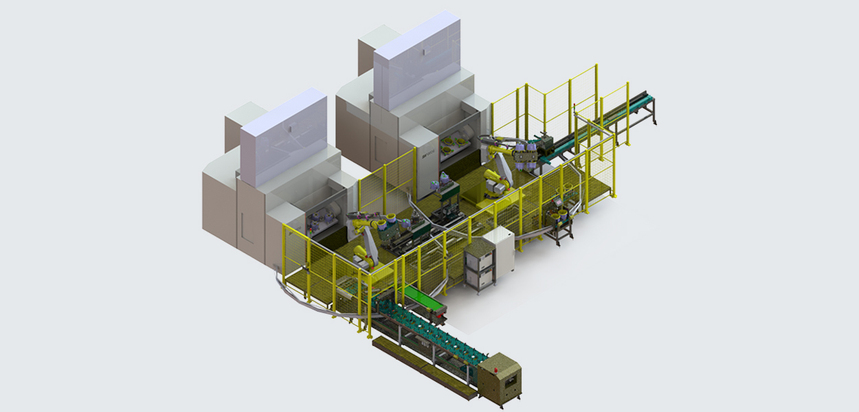 生產(chǎn)工藝涵蓋了從毛坯自動(dòng)分揀,機(jī)器人自動(dòng)上下料,打碼掃碼,信息追溯,自動(dòng)下料,檢查等全系列加工工藝范圍